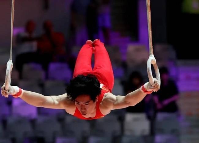 张博恒在须眉个东谈主万能决赛吊环面目比赛中。新华社记者 岑云鹏摄